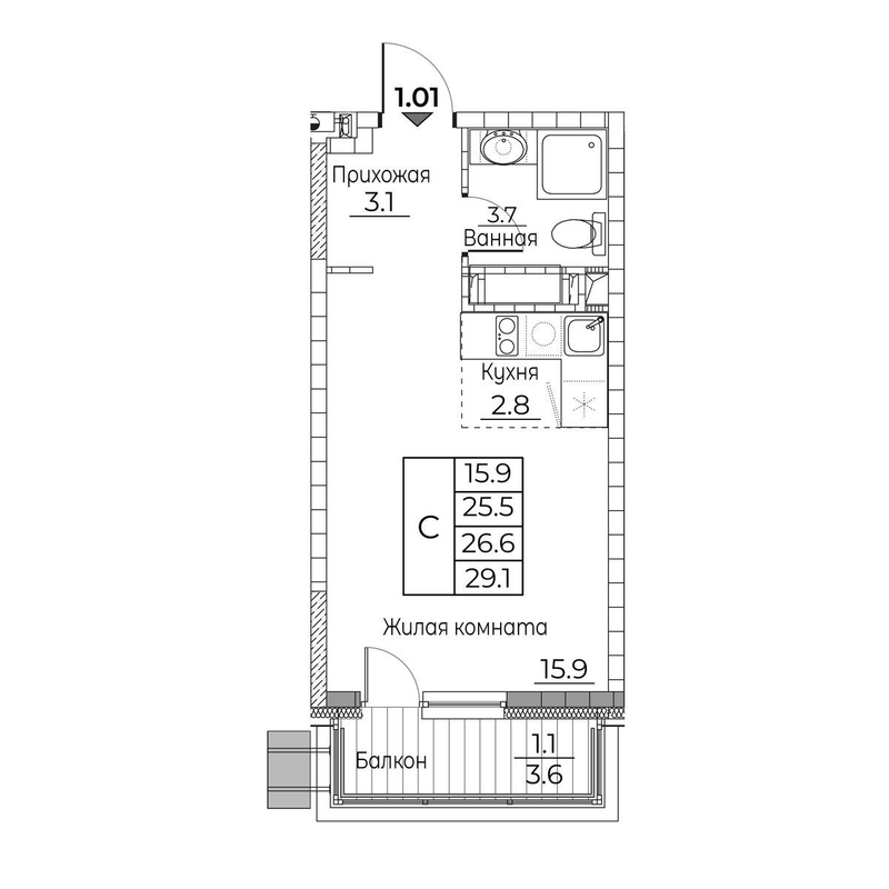 - +1 акция№ 7Корпус 1, Секция 1, Этаж 2