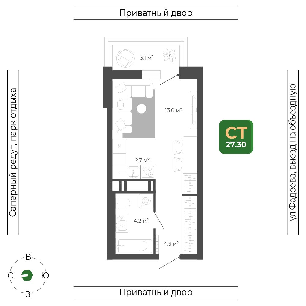 - +1 акция№ 268Корпус 3, Секция 2, Этаж 4