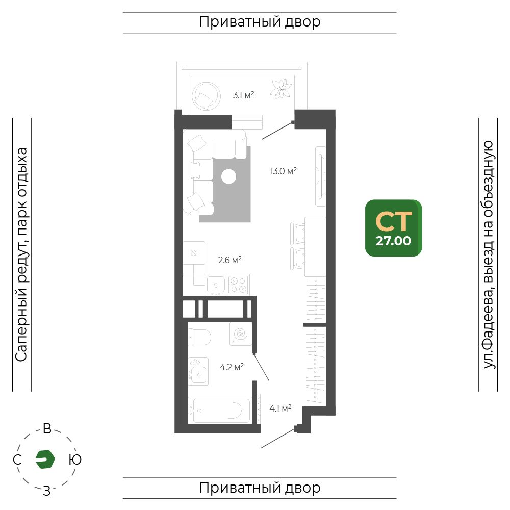 - +1 акция№ 420Корпус 2, Секция 2, Этаж 14