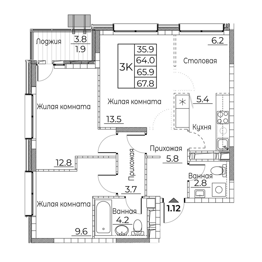 3-комнатная