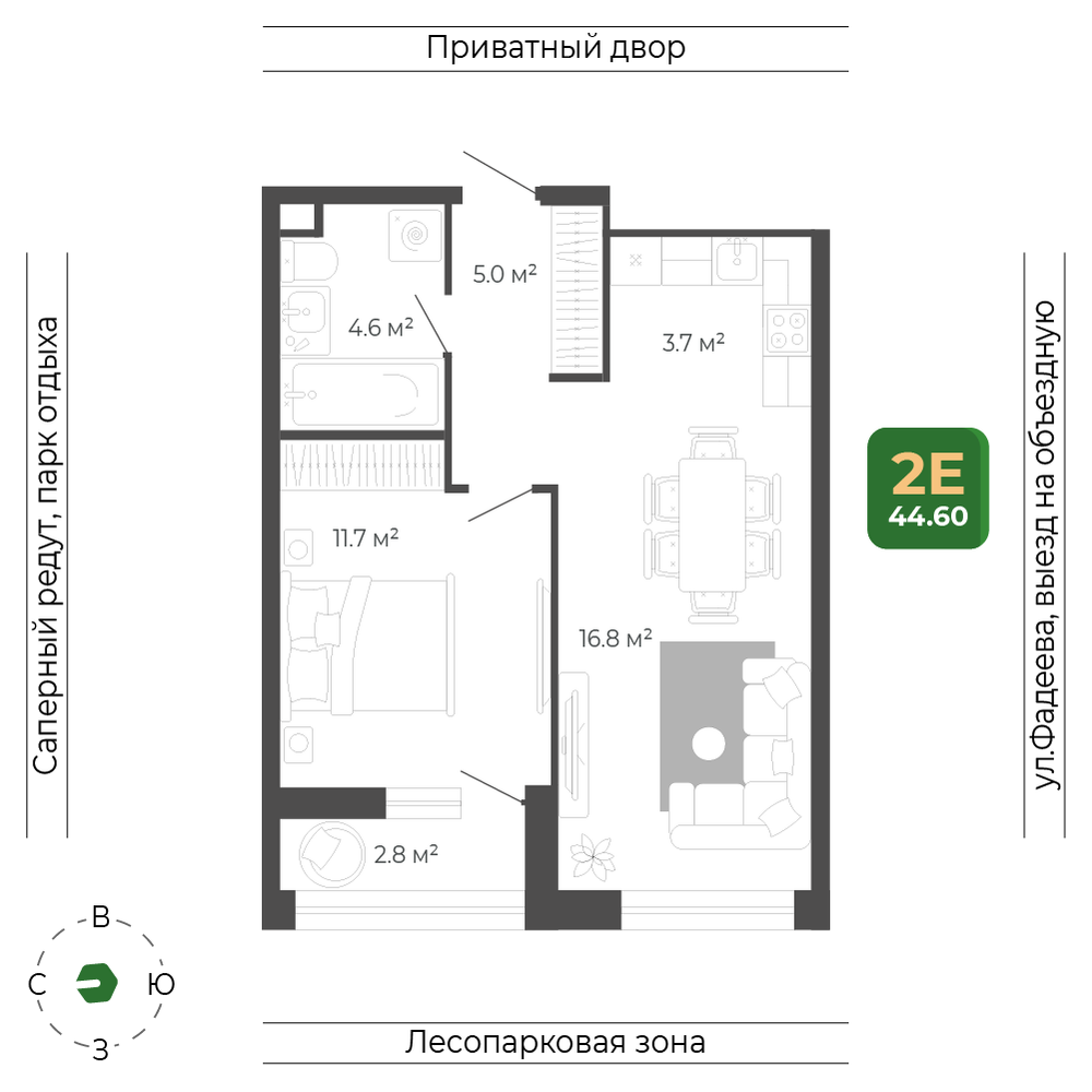 2-комнатная 44.6 м2