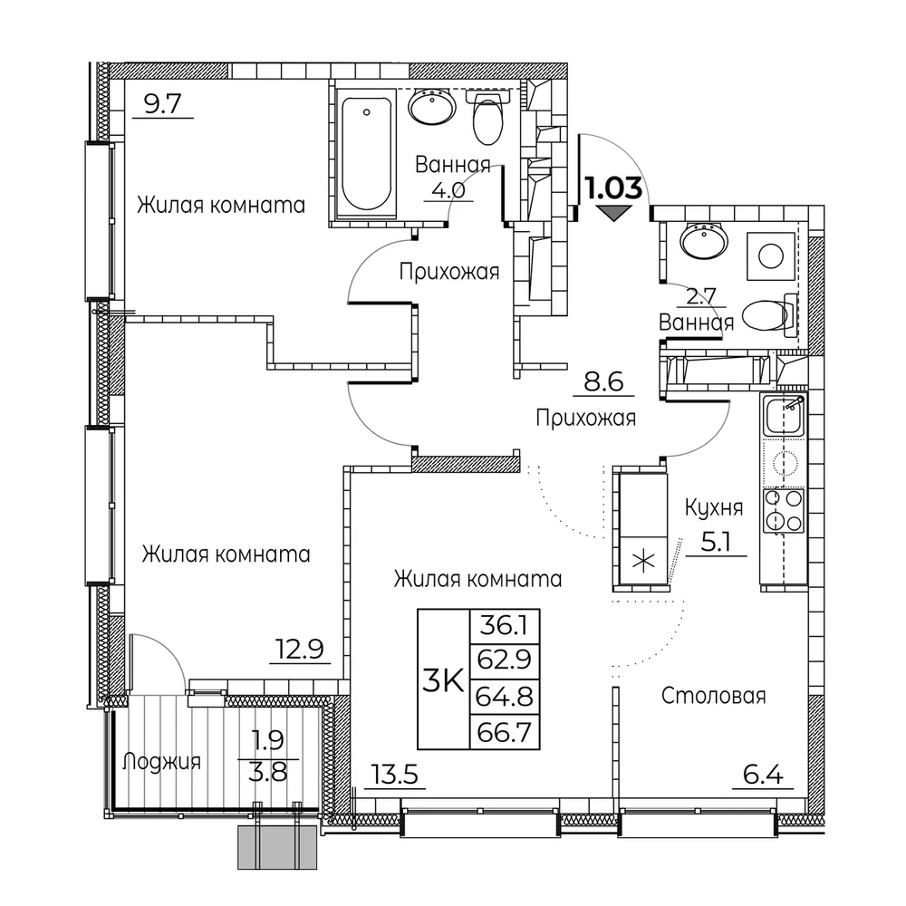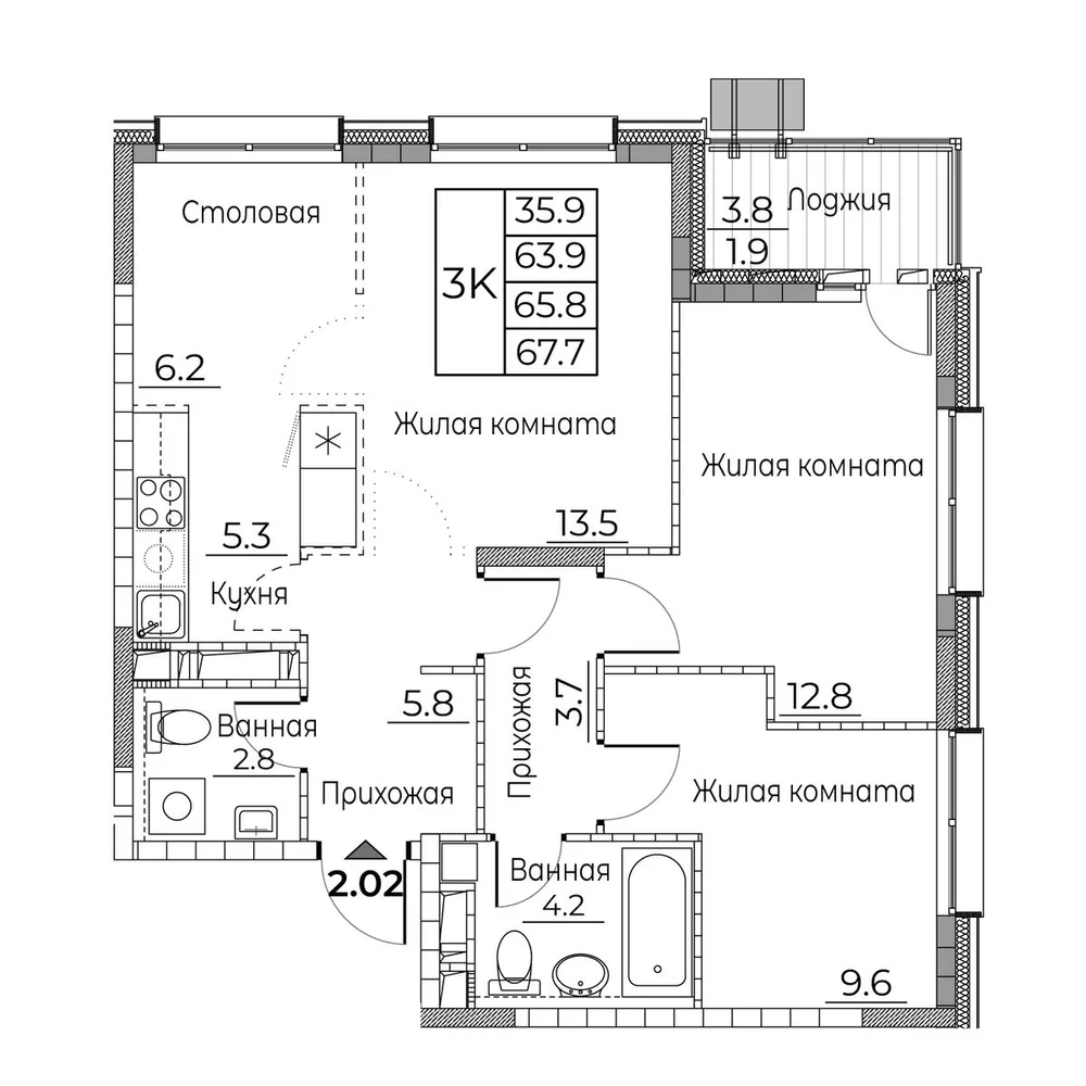 67.7 м2