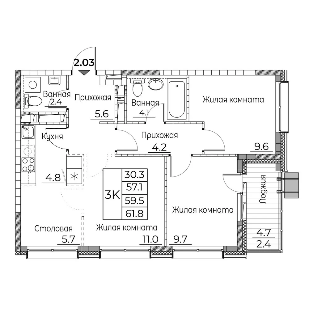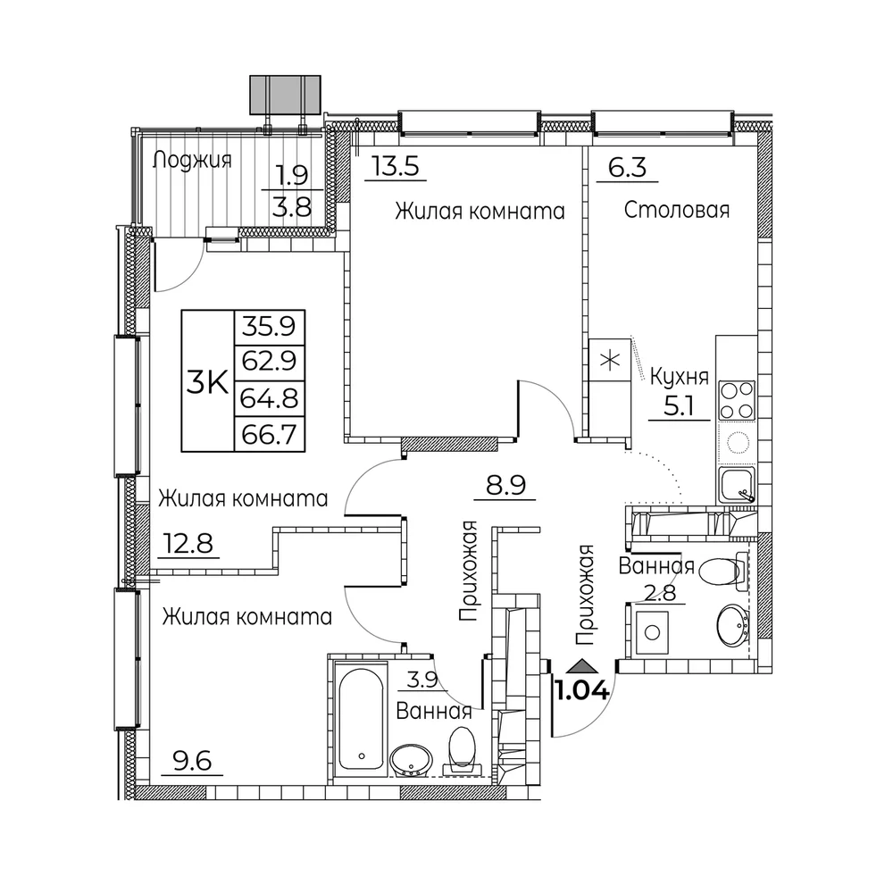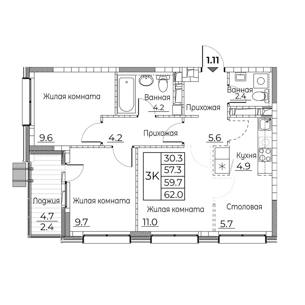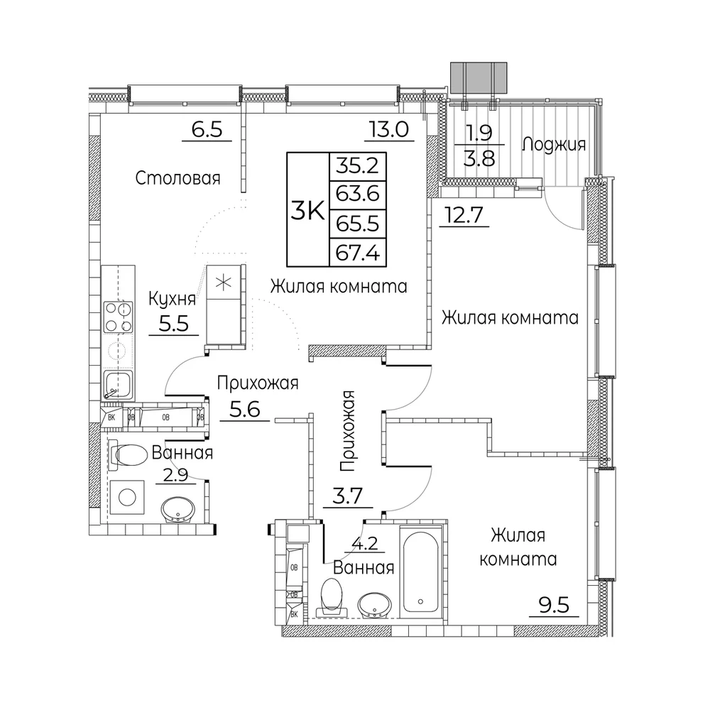 3-комнатная