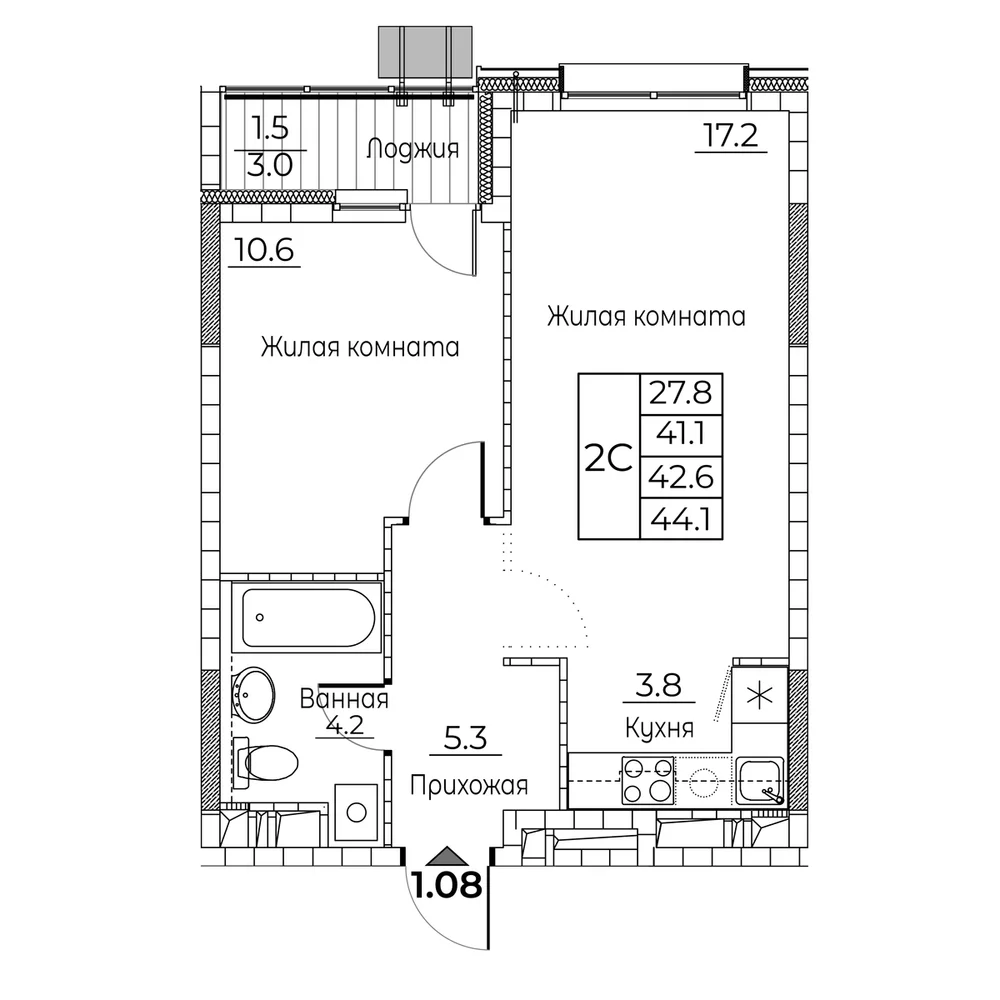 42.4 м2