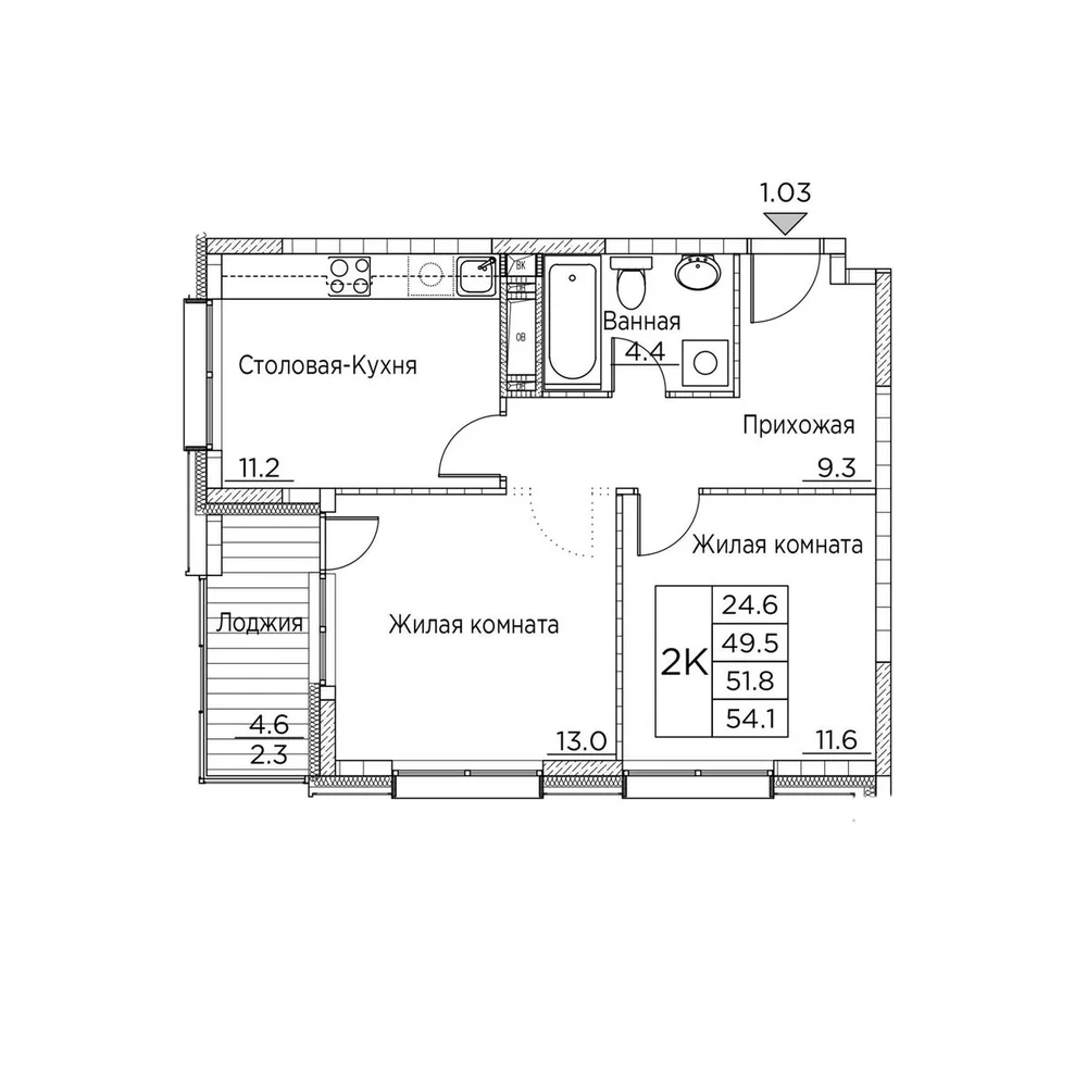2-комнатная  53.9 м2