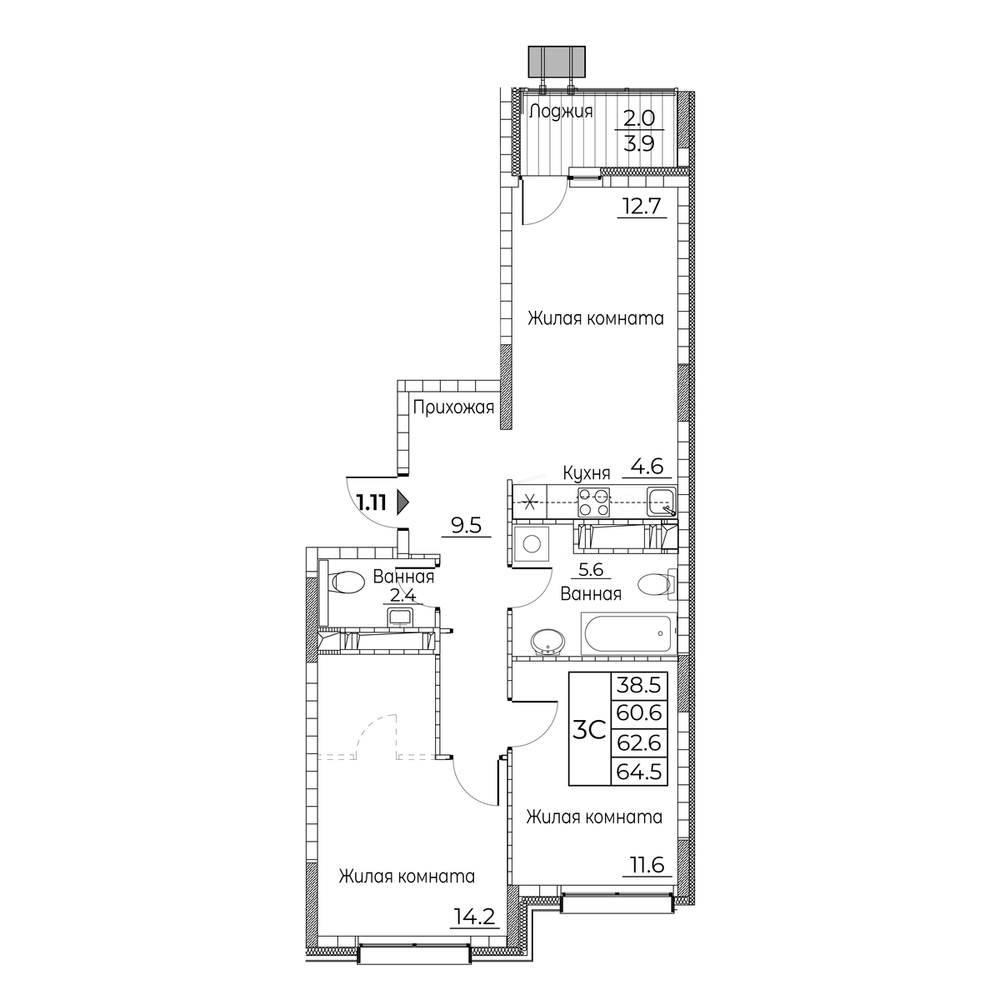 3-комнатная