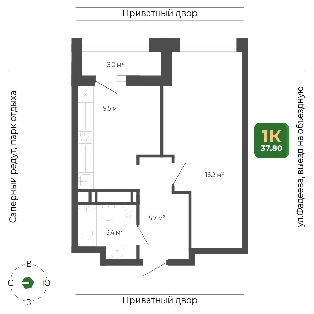 1-комнатная 38 м2